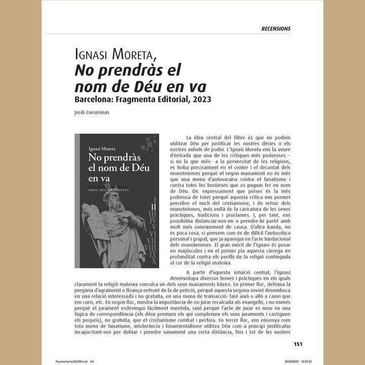 Ignasi Moreta (Barcelona, 1980) és professor del Departament de Filologia Catalana de la Universitat Autònoma de Barcelona i editor de Fragmenta. Doctor en humanitats per la Universitat Pompeu Fabra (2008) i doctor en estudis literaris per la Universitat de Barcelona (2025), s’ha especialitzat en l’estudi del pensament de Joan Maragall. És autor de No et facis posar cendra. Pensament i religió en Joan Maragall (2010) i de No prendràs el nom de Déu en va, a la sèrie «Deu Manaments» (2023). Va ser l’interlocutor de les Converses amb Josep Rius-Camps (2014) i de les converses amb Joan-Carles Mèlich a Contra els absoluts (2018), amb Lluís Duch a Conversa amb Lluís Duch. Religió, comunicació i política (2019) i amb Dolors Bramon a Professora d’islam (2023). El 2020 va ser el curador de Conceptes fonamentals d’antropologia i religió, de Lluís Duch. Ha tingut cura de l’edició de quatre llibres de Maragall: Visions & cants (Hermes, 2003), La Setmana Tràgica (Fragmenta, 2009), Poesia i teatre (Edicions 62, 2020) i Prosa (3 vol., Edicions 62, 2024), els dos últims en col·laboració amb Lluís Quintana Trias i en el marc de l’edició crítica de les obres completes de l’escriptor. És director literari de Fragmenta Editorial, que va fundar —juntament amb Inês Castel-Branco— l’any 2007. L’any 2012 la Cambra del Llibre de Catalunya va reconèixer la seva tasca editorial amb el premi Memorial Ferran Lara a un jove emprenedor del sector del llibre. L’any 2018 va ser el comissari de l’Any Panikkar, en el centenari del naixement d’aquest pensador.